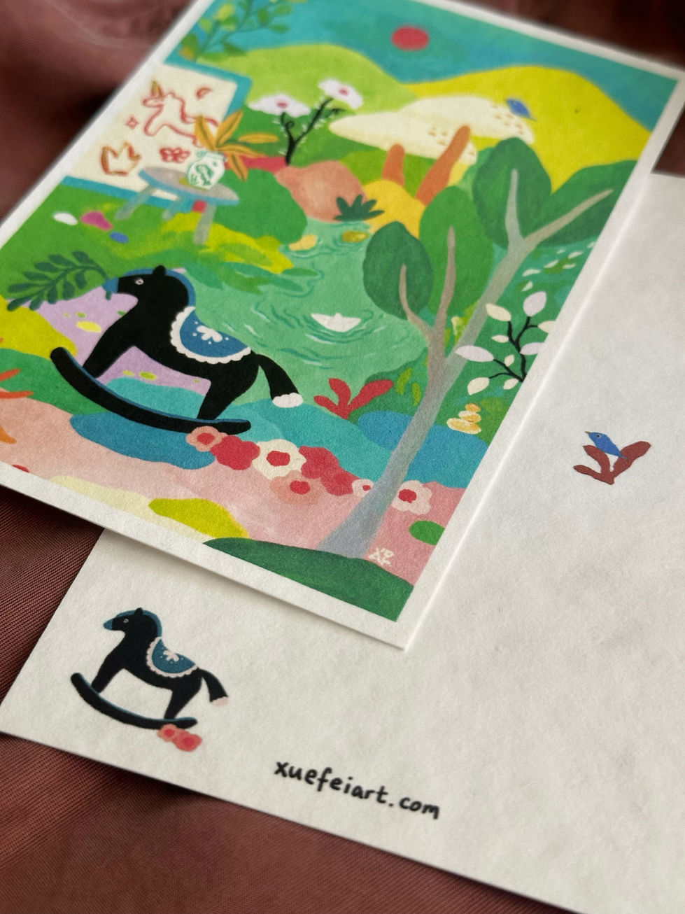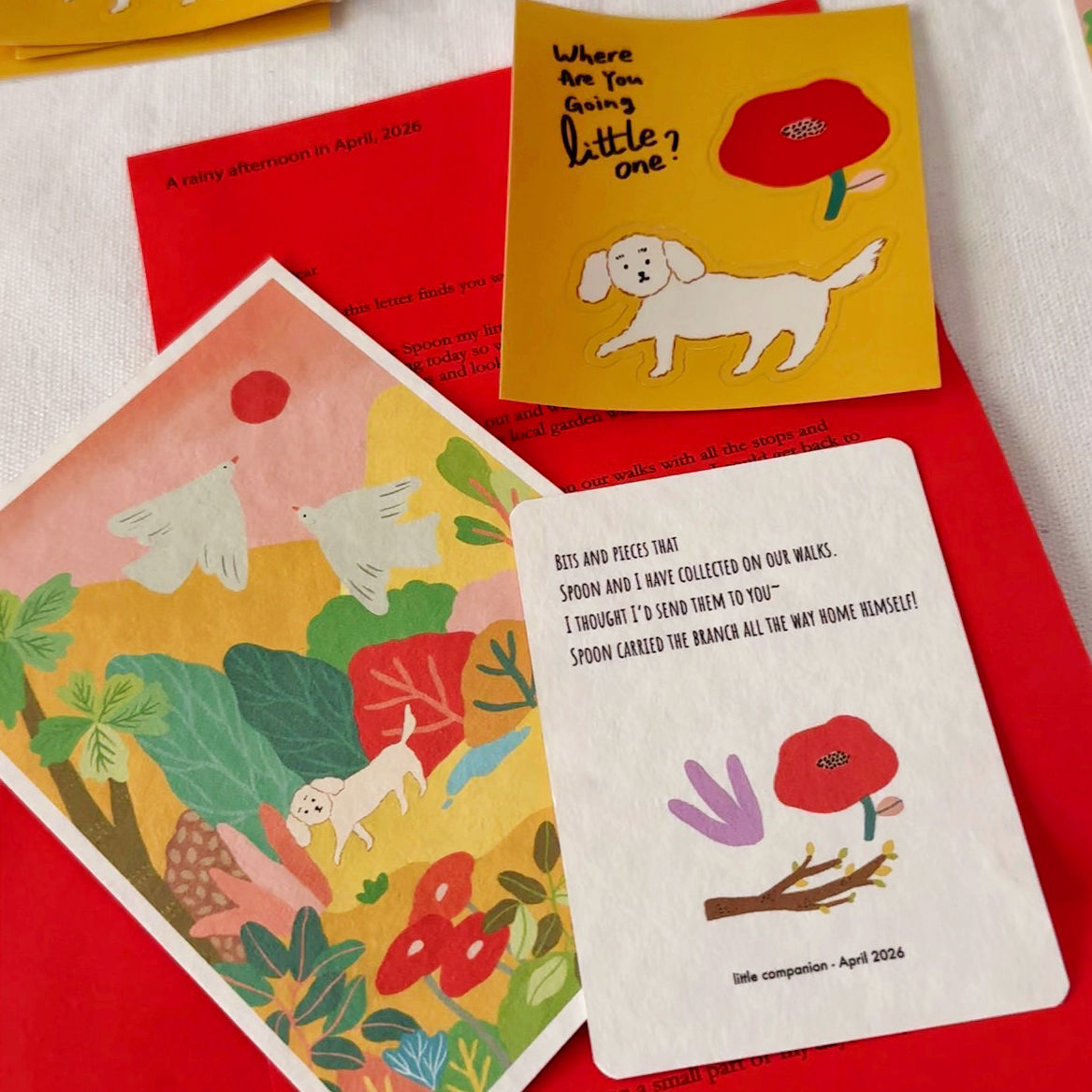 Each month I will send you a new A6 art print, a little letter from me, like writing to a pen pal somewhere in the world, a small companion from my world, and sometimes a few tiny surprises such as cutouts for your journaling, stickers, bookmark and fun activities.